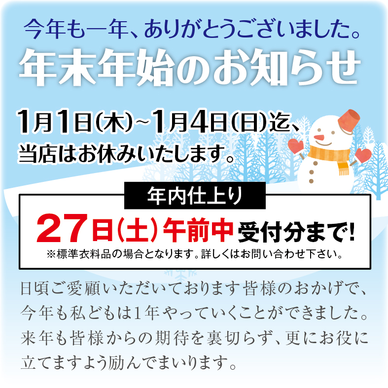 【年末年始の営業についてのお知らせ】